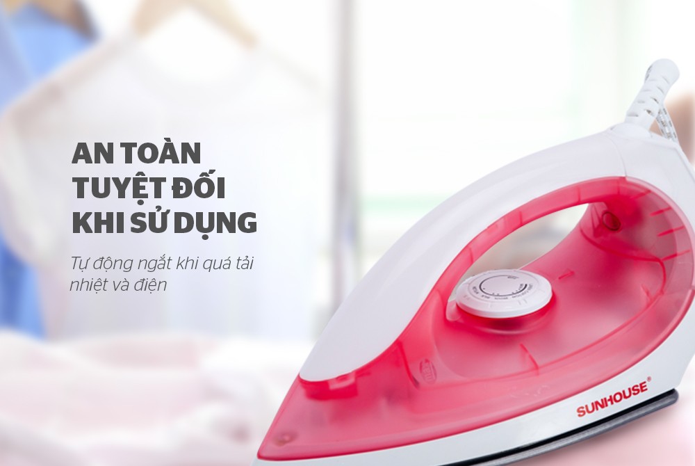 Mua tại TiktokBàn là khô Sunhouse SHD1072 hồng - Hàng chính hãng, Bàn Ủi Khô Công Suất 1100W ĐẶC ĐIỂM NỔI BẬT Chế độ điều chỉnh nhiệt độ linh hoạt và tiện dụng Bề mặt bàn là chống dính, trượt êm trên mọi loại vải Bàn ủi được thiết kế mũi nhọn và rãnh cúc áo, là phẳng mọi chi tiết nhỏ An toàn tuyệt đối khi sử dụng Bàn là SUNHOUSE SHD1072P là thiết bị gia dụng thiết yếu trong mỗi gia đình. Với công suất lớn dễ dàng điều chỉnh bằng núm xoay, mặt bàn là chống dính lướt êm trên mọi mặt vải, dây điện chắc chắn an toàn, sản phẩm có khả năng ủi là nhanh hơn hẳn so với bàn là thường, xóa nhanh các nếp nhăn quần áo mà không làm phai màu, giữ mùi thơm của quần áo lâu dài. THIẾT KẾ HIỆN ĐẠI – TRẺ TRUNG - TIỆN DỤNG Thiết kế gọn nhẹ, dễ sử dụng
