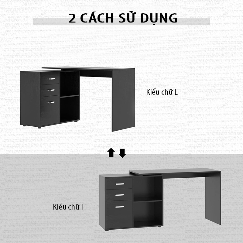 ✨Bàn Làm Việc Kết Hợp Tủ Gỗ 3 Ngăn Kéo Hiện Đại Màu Trắng Đen Thương Hiệu SIB Decor BLV106/107