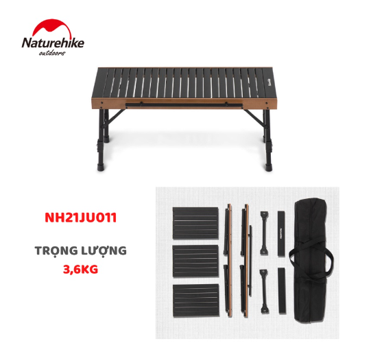 MÔ TẢ SẢN PHẨM Thông tin sản phẩm: - Thương hiệu: NatureHike - Mã sản phẩm: NH22JU012 - Chất liệu: - Mặt bàn: Gỗ tre - Khung bàn: hợp kim nhôm - Túi vải: Vải