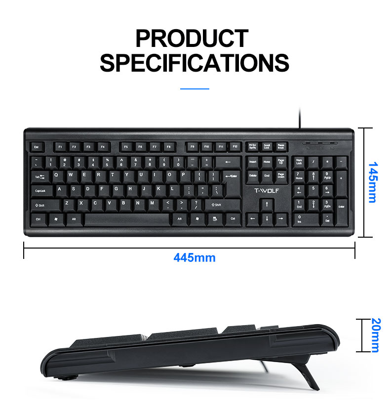 ✨Bàn Phím Văn Phòng T-WOLF T15 USB- Hàng Chính Hãng