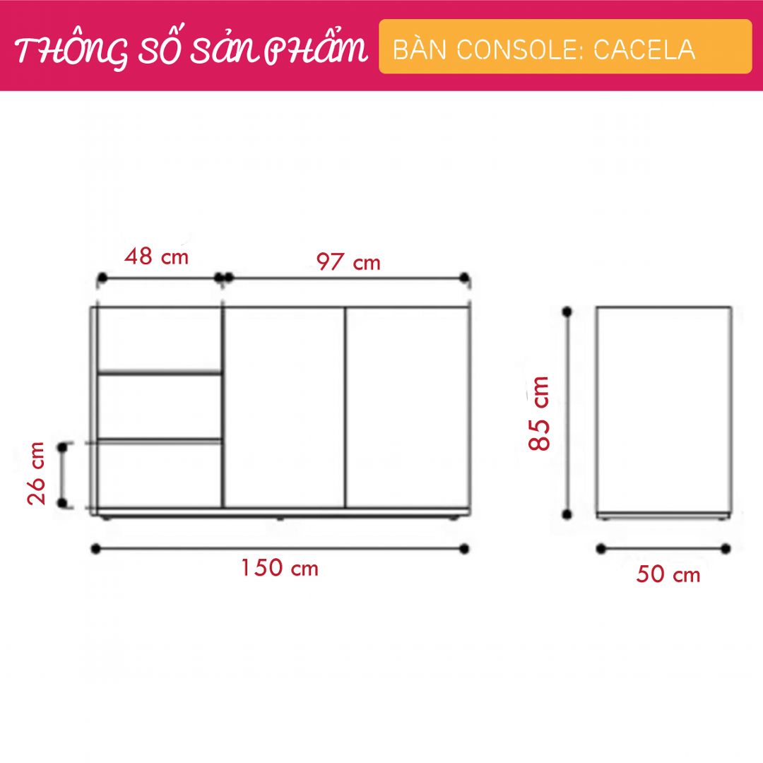 - Kích thước: Dài 150cm x Rộng 50cm x Cao 85cm