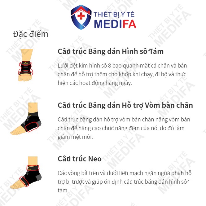 1. Đặc điểm sản phẩm: - Dễ sử dụng, phù hợp cho cả cổ chân trái và cổ chân phải. - Với chất liệu thun co giãn giúp sản phẩm dễ điều chỉnh hơn, vừa