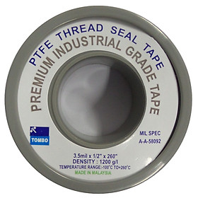 Mua tại TiktokKeo lụa Tombo Malaysia xám hóa chất công nghiệp là PTFE mềm được kéo thành lụa bản ½” dài 6.8 mét dùng chèn kín cho các mối nối ống bằng ren.