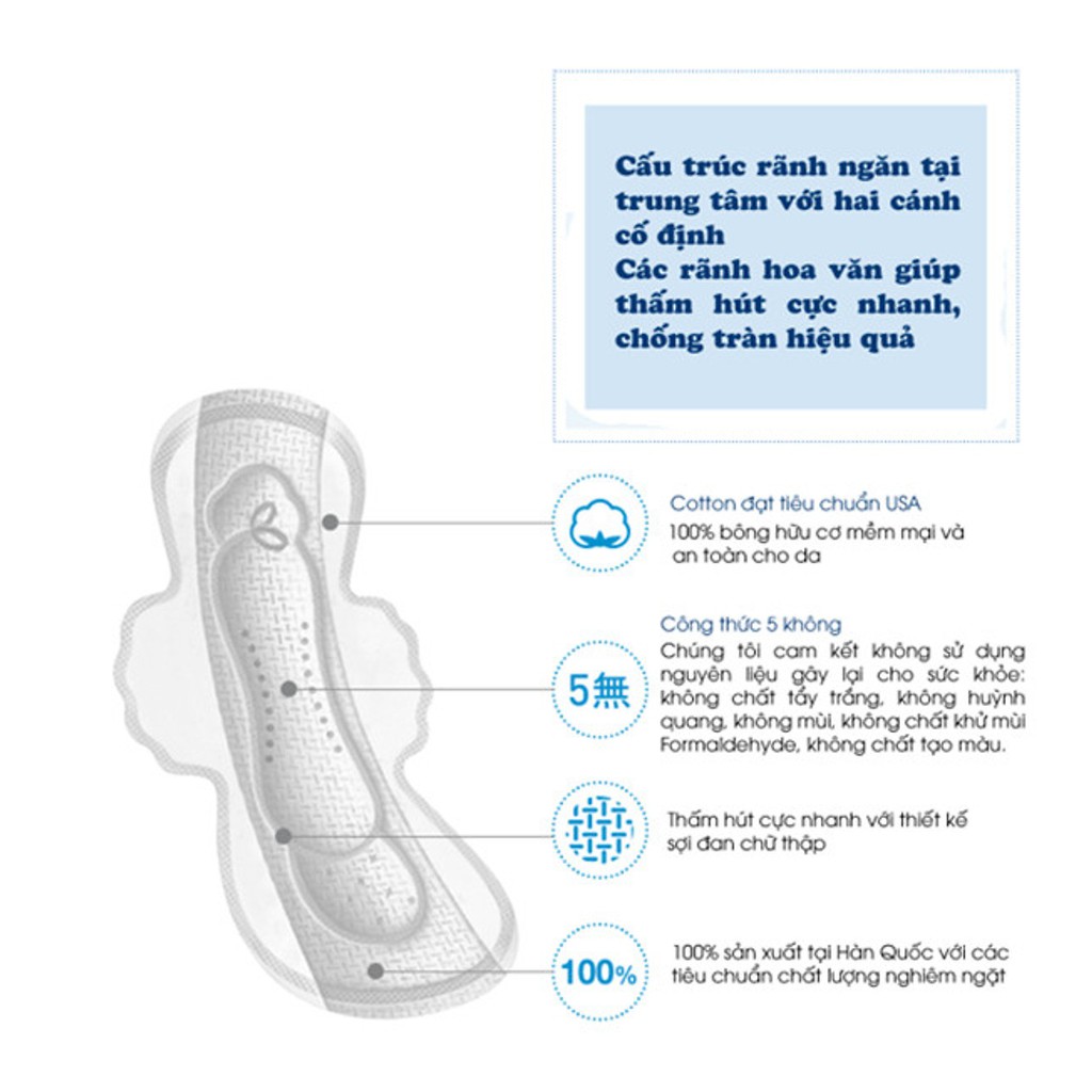 Thương hiệu: Labo Xuất xứ: Đài Loan Size:  + 21.5cm (20 miếng) - Có cánh + 25.5cm (16 miếng) - Có cánh + 25.5cm (16 miếng) - Không cánh + 36cm (7 miếng) - Có