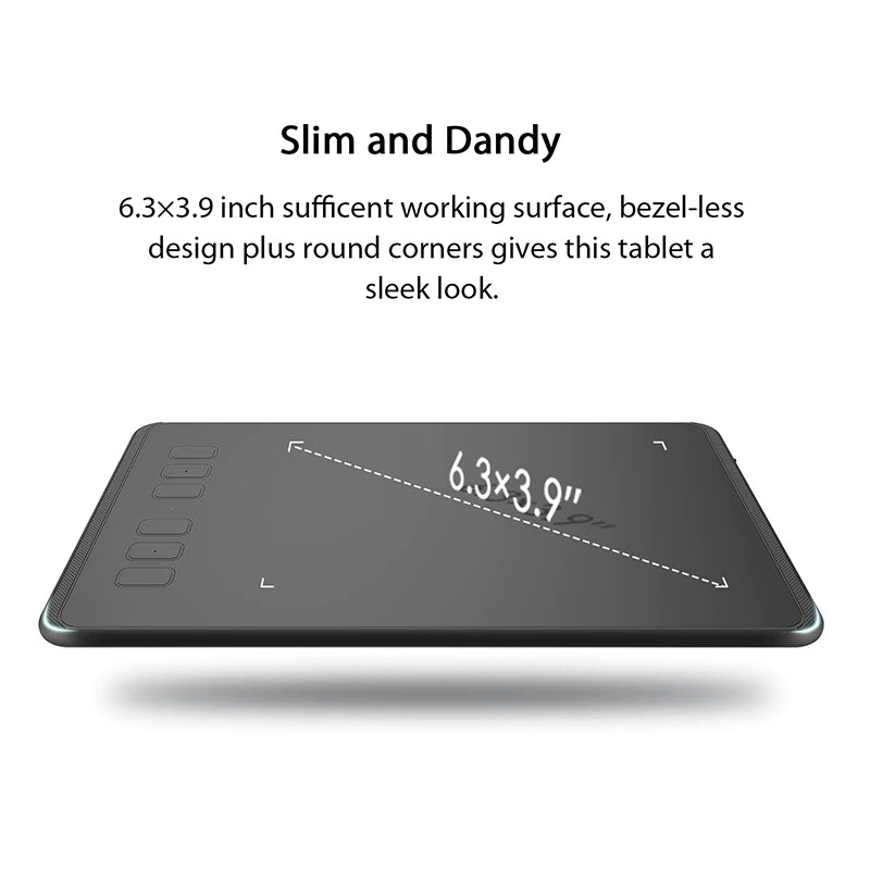 - 8192 Mức độ nhạy của áp lực bút Tận hưởng độ chính xác và độ chính xác khi sử dụng máy tính bảng hoạt hình; Chỉ dày 8mm và nặng 227g, bề mặt làm việc vừa đủ 6,3 × 3,9 inch, dễ dàng mang theo máy tính bảng nghệ thuật.