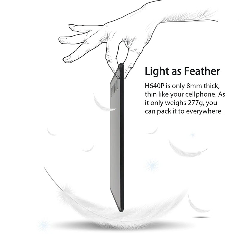 Ưu điểm nhỏ gọn của chúng. Khác với bảng vẽ truyền thống khá cồng kềnh thì G640 lại vô cùng gọn nhẹ. Bảng vẽ này chỉ mỏng chỉ 2mm, với vùng vẽ 6 x 4