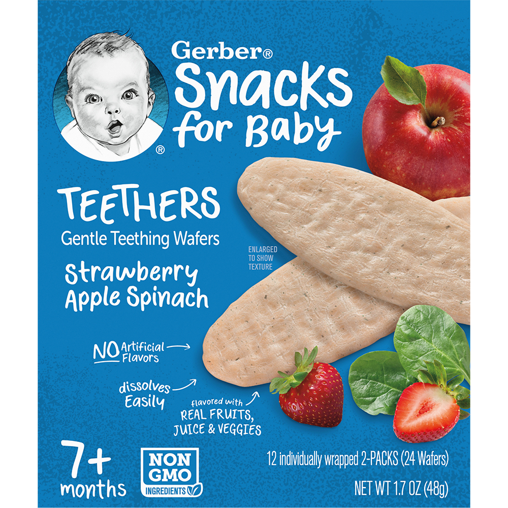 Bánh gạo Gerber vị Dâu Táo, Cải bó xôi 48g 7M+