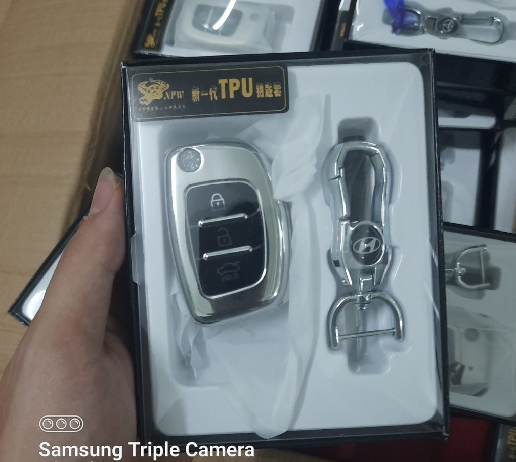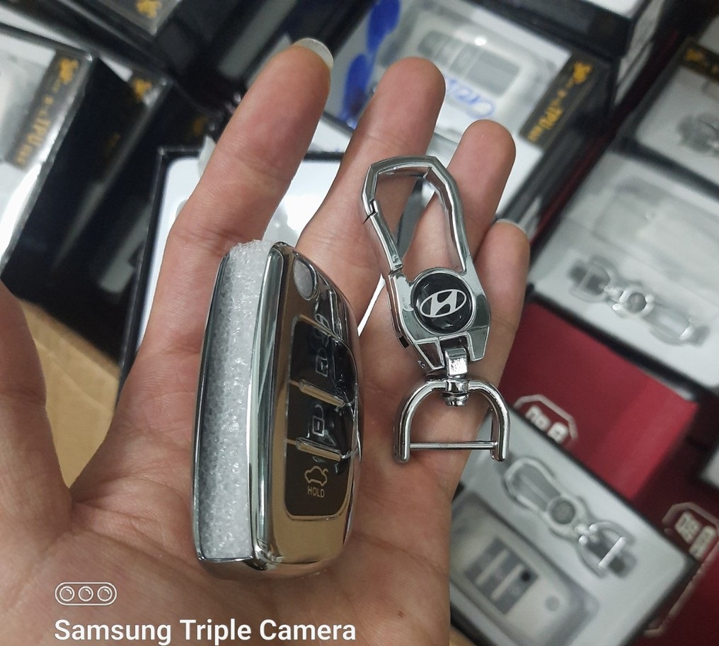 Mua tại TiktokBao chìa khoá ô tô xe I10 chìa cơ nút silicon mạ crom ️ Bộ gồm :