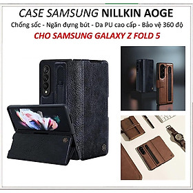 Bao da chống sốc cho Samsung Galaxy Z Fold 5/ Z Fold 6 trang bị ngăn đựng S-Pen hiệu Nillkin Aoge Leather Cover Case (bảo vệ máy cực tốt, chất liệu da thật cao cấp, thiết kế thời trang cá tính)