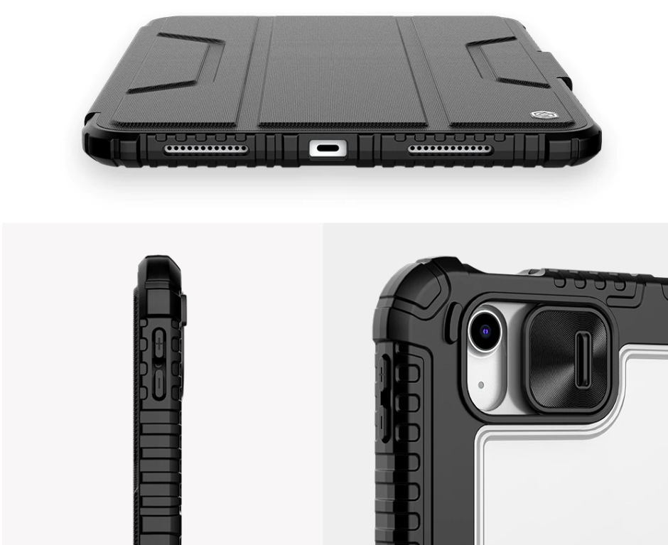 Bao da chống sốc cho iPad Gen 10 hiệu Nillkin Bumber Pro có ngăn đựng bút có trang bị 1 nắp đậy dày 1.1mm giúp bảo vệ camera của chiếc iPad Gen 10 tránh bị trầy xước va chạm và chống bụi bẩn.