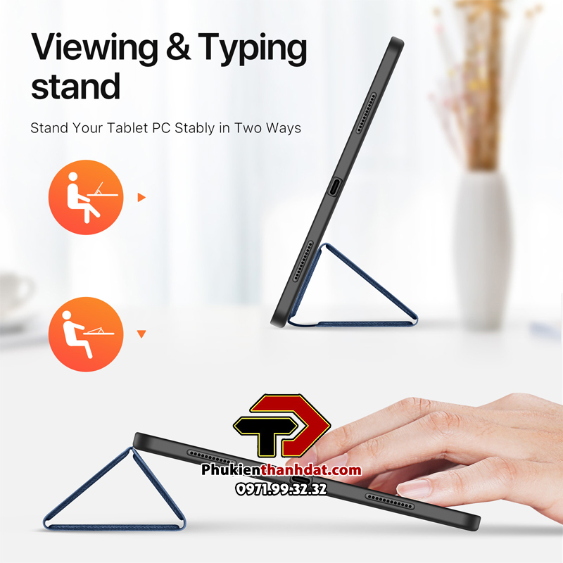 Bao da kèm bàn phím chính hãng Dux Ducis có bàn di chuột TrackPad với chân đế có thể điều chỉnh, bàn phím có thể tháo rời và bàn di chuột thông minh để đánh máy,