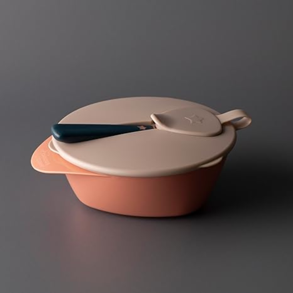 Bát có nắp đậy kín chống rò rỉ và kèm thìa ăn dặm với đầu thìa bề mặt kháng khuẩn công nghệ BacShield tiện lợi để mẹ mang theo trong những dịp du lịch.