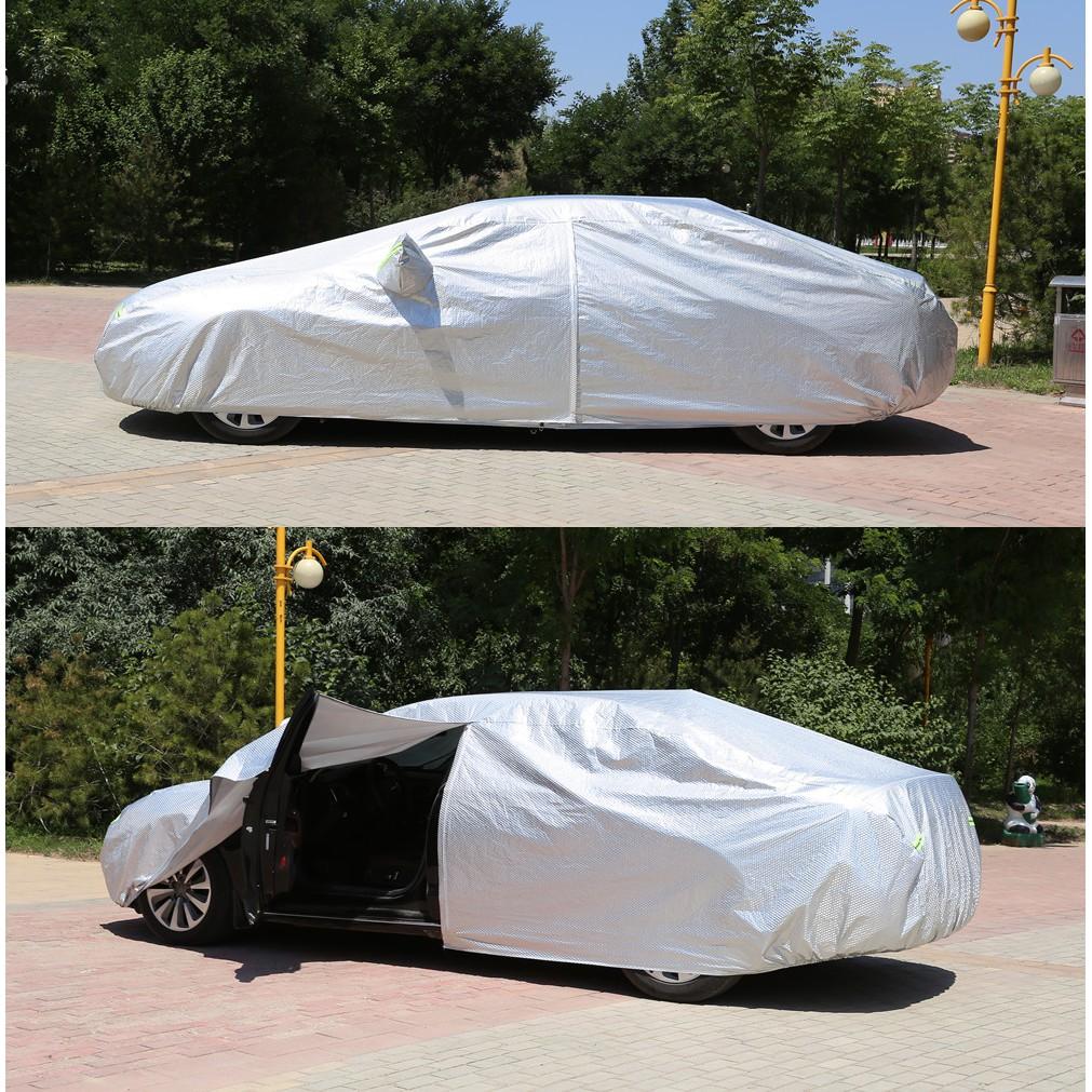 Bạt phủ xe ô tô 7 chỗ 3 lớp tráng nhôm cách nhiệt, chống nóng, chống thấm, chống bụi bẩn - Bạt phủ xe có mặt ngoài là chất liệu vải PEVA tráng nhôm phản