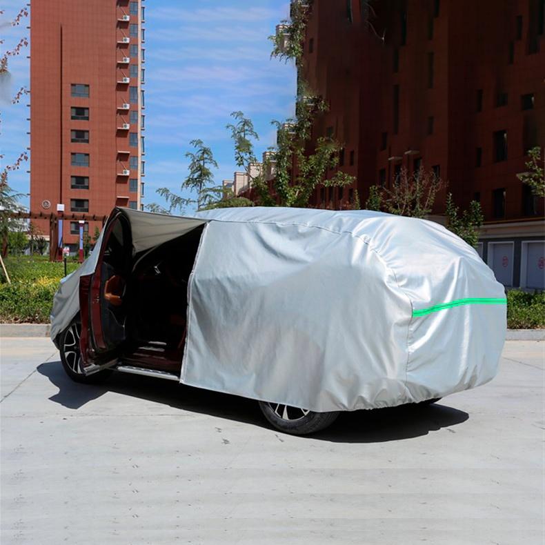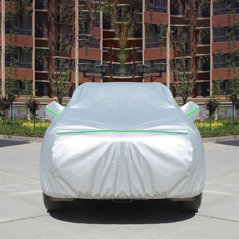 Bạt phủ xe ô tô 7 chỗ 3 lớp tráng nhôm cách nhiệt, chống nóng, chống thấm, chống bụi bẩn - Bạt phủ xe có mặt ngoài là chất liệu vải PEVA tráng nhôm phản