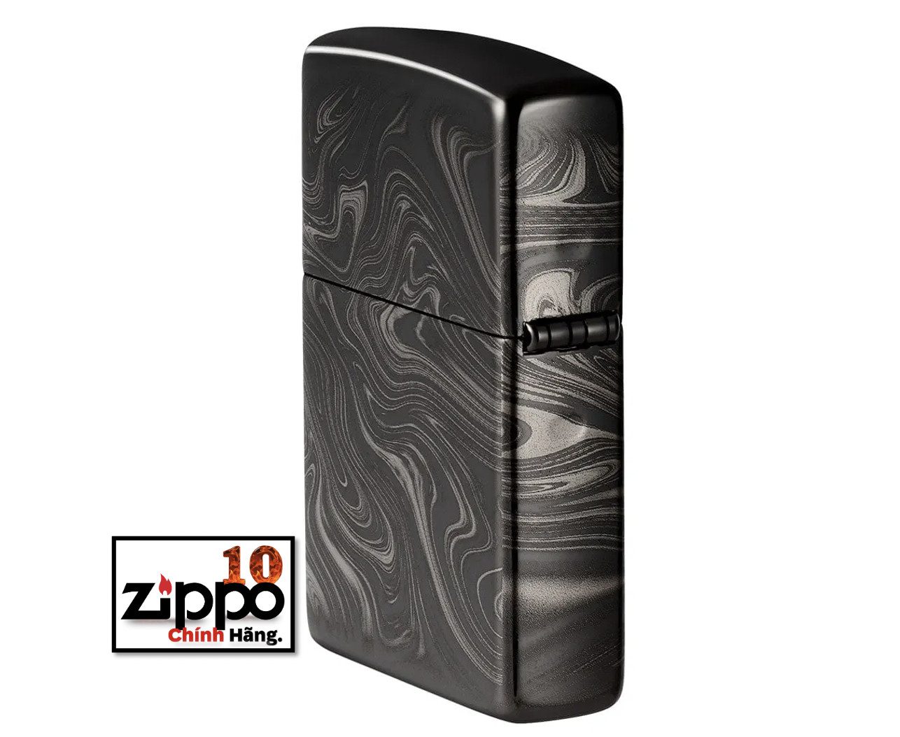 Thiết kế mới hoa văn vân đá cẩm thạch được tạo trên chiếc bật lửa Zippo đồng thau, nền mạ High Polish Black bằng qui trình in hình ảnh màu 360° của Zippo. Được đóng