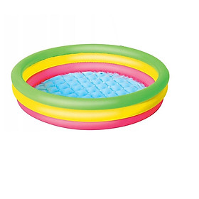 Kích thước: Đường kính 102 * Cao 25 (cm) Với sản phẩm Bể bơi 3 tầng và 3 màu Bestway, giờ đây cha mẹ có thể hoàn toàn yên tâm cho bé được thỏa thích