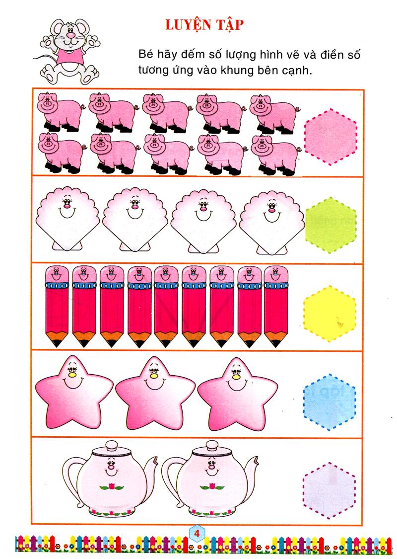 Tuyển tập "Bé làm quen với môn toán" với sự kết hợp của nhiều phương pháp giúp các bé phát huy tối đa khả năng của mọi giác quan, rèn luyện sự khéo léo và kích thích não bộ phát triển về mặt tư duy logic.