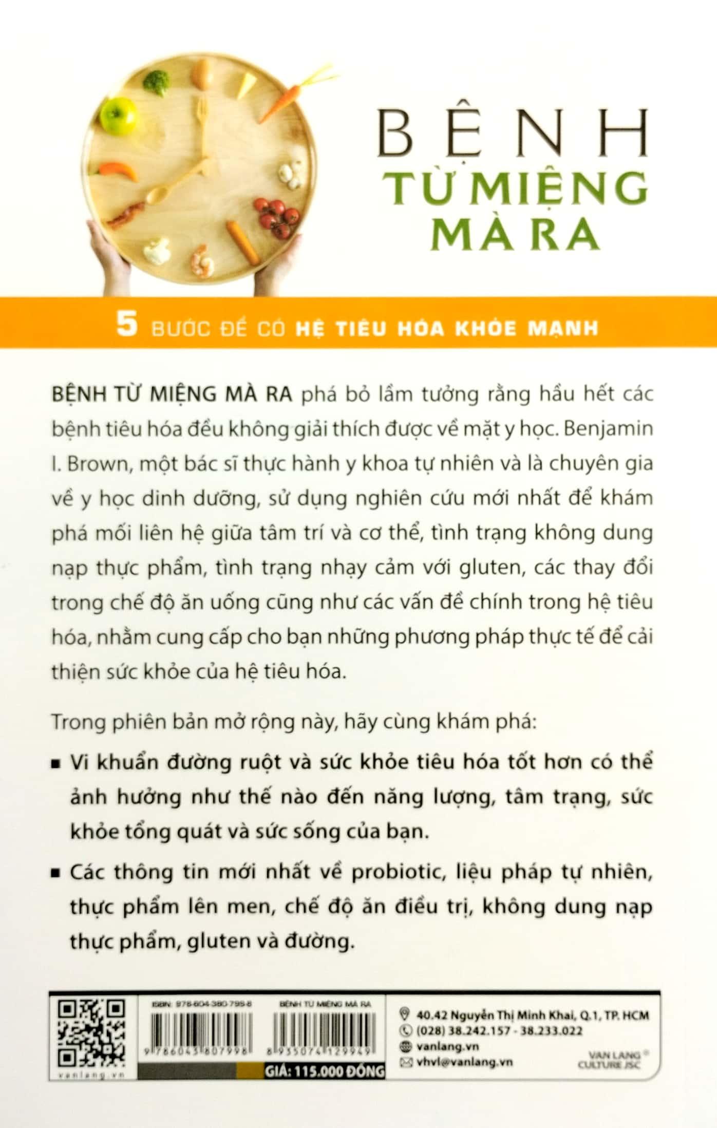 Bệnh Từ Miệng Mà Ra phá bỏ lầm tưởng rằng hầu hết các bệnh tiêu hóa đều không giải thích được về mặt y học. Benjamin I. Brown, một bác sĩ thực hành y khoa tự nhiên và là chuyên gia về y học dinh dưỡng, sử dụng nghiên cứu mới nhất để khám phá mối liên hệ giữa tâm trí và cơ thể, tình trạng không dung nạp thực phẩm, tình trạng nhạy cảm với gluten, các thay đổi trong chế độ ăn uống cũng như các vấn đề chính trong hệ tiêu hóa, nhằm cung cấp cho bạn những phương pháp thực tế để cải thiện sức khỏe của hệ tiêu hóa.