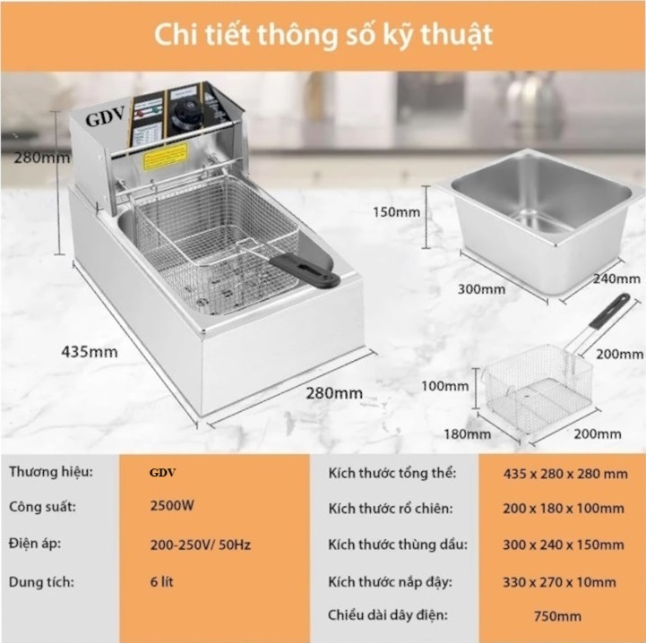 Bếp Chiên Nhúng Điện Ngập Dầu GDV Y06L (6 lít) - Hàng Chính Hãng là dụng cụ không thể thiếu được tại các cửa hàng hay những quán ăn phục vụ món ăn nhanh như: thịt viên, thịt xiên, khoai tây rán, gà chiên, gà rán…Với những ưu điểm vượt trội tiết kiệm thời gian, công sức của người làm bếp, bếp chiên đa năng ngày càng là một lựa chọn tốt nhất cho bạn không chỉ ở các nhà hàng mà bạn cũng có thể sắm ngay cho gia đình mình một chiếc và cùng thưởng thức những món chiên, rán ngon tuyệt. Vừa tiện lợi, đảm bảo an toàn mà giá cả cũng rất phù hợp bếp chiên đa năng sẽ khiến bạn không khỏi hài lòng.