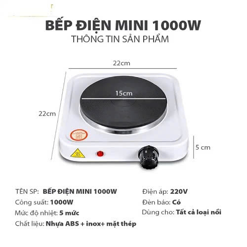 Giới thiệu sản phẩm Bạn đang tìm kiếm một chiếc bếp điện mini đa năng có thể pha cà phê, đun nước, nấu trà hay hơ lá trầu tiện lợi? Bếp Điện Mini 500W-1000W là lựa chọn hoàn hảo dành cho bạn. Với thiết kế nhỏ gọn, công suất mạnh mẽ, sản phẩm giúp bạn dễ dàng chuẩn bị đồ uống hoặc thực hiện các công việc đun nấu đơn giản mọi lúc, mọi nơi.