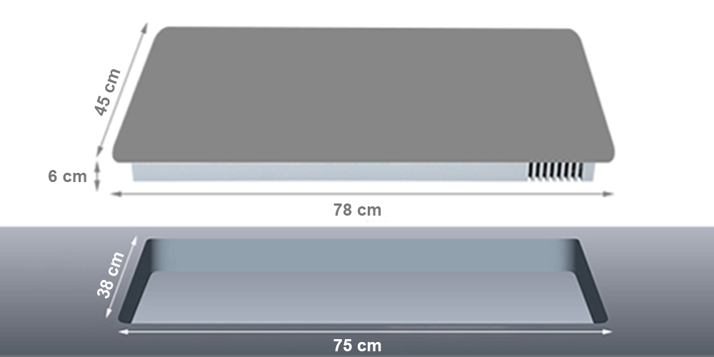 - Kích thước mặt kính: 780 x 450 mm