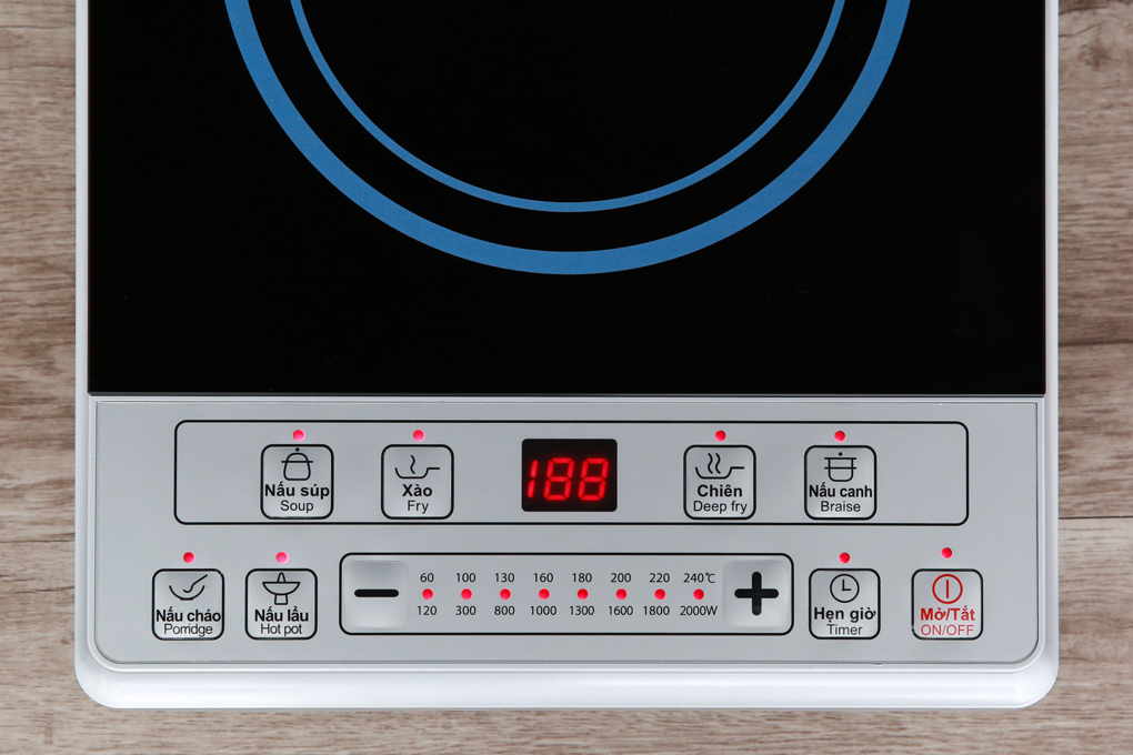 Bếp từ có chức năng hẹn giờ lên đến 2 tiếng cho phép bạn chọn thời gian nấu thích hợp với từng món ăn khác nhau, giúp chị em tranh thủ làm nhiều việc khác mà không lo thức ăn bị cháy khét.