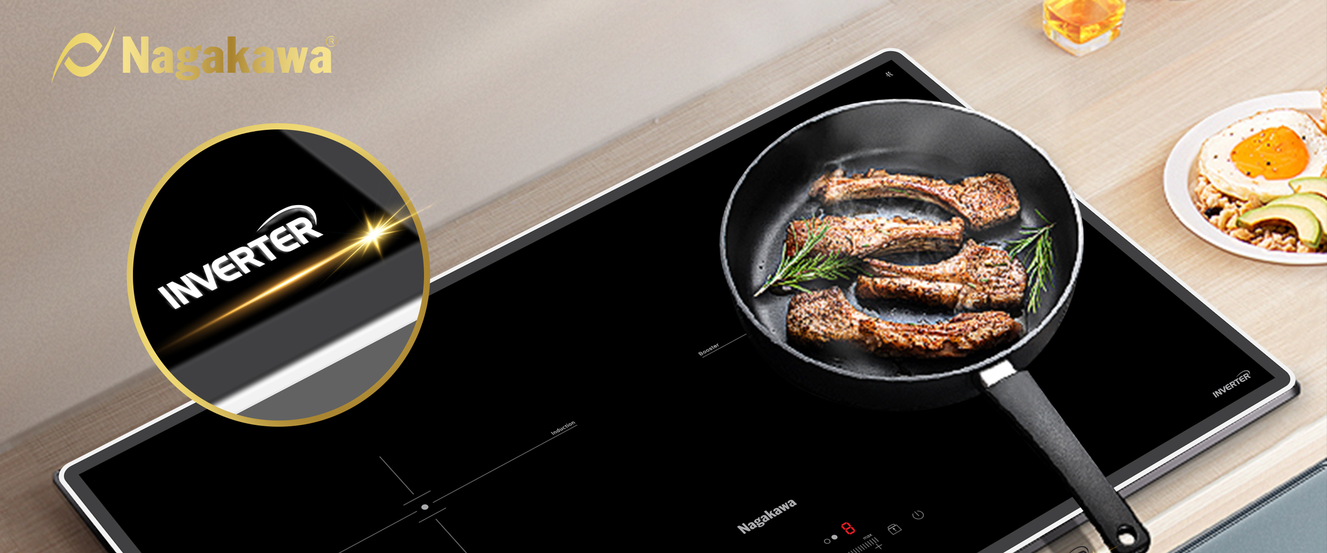 CÔNG NGHỆ INVERTER TIẾT KIỆM ĐIỆN Bếp đôi điện từ Nagakawa UltraSlim NK2C29MB công nghệ Inverter kiểm soát công suất của thiết bị, nhằm tránh hao phí năng lượng trong quá trình sử dụng. Nguyên tắc cơ bản của công nghệ Inverter là dựa trên kiểm soát từng tần số dao động (Hz) của các bảng mạch bên trong bếp, giúp đảm bảo độ ổn định của bếp, tiết kiệm tối đa năng lượng và gia tăng tính năng thông minh cho bếp. Hệ điều hành Dual Core sử dụng kết hợp 2 IGBT hoạt động đồng thời giúp bếp đạt công suất tối đa trong vòng vài giây, hoạt động mạnh mẽ và ổn định.