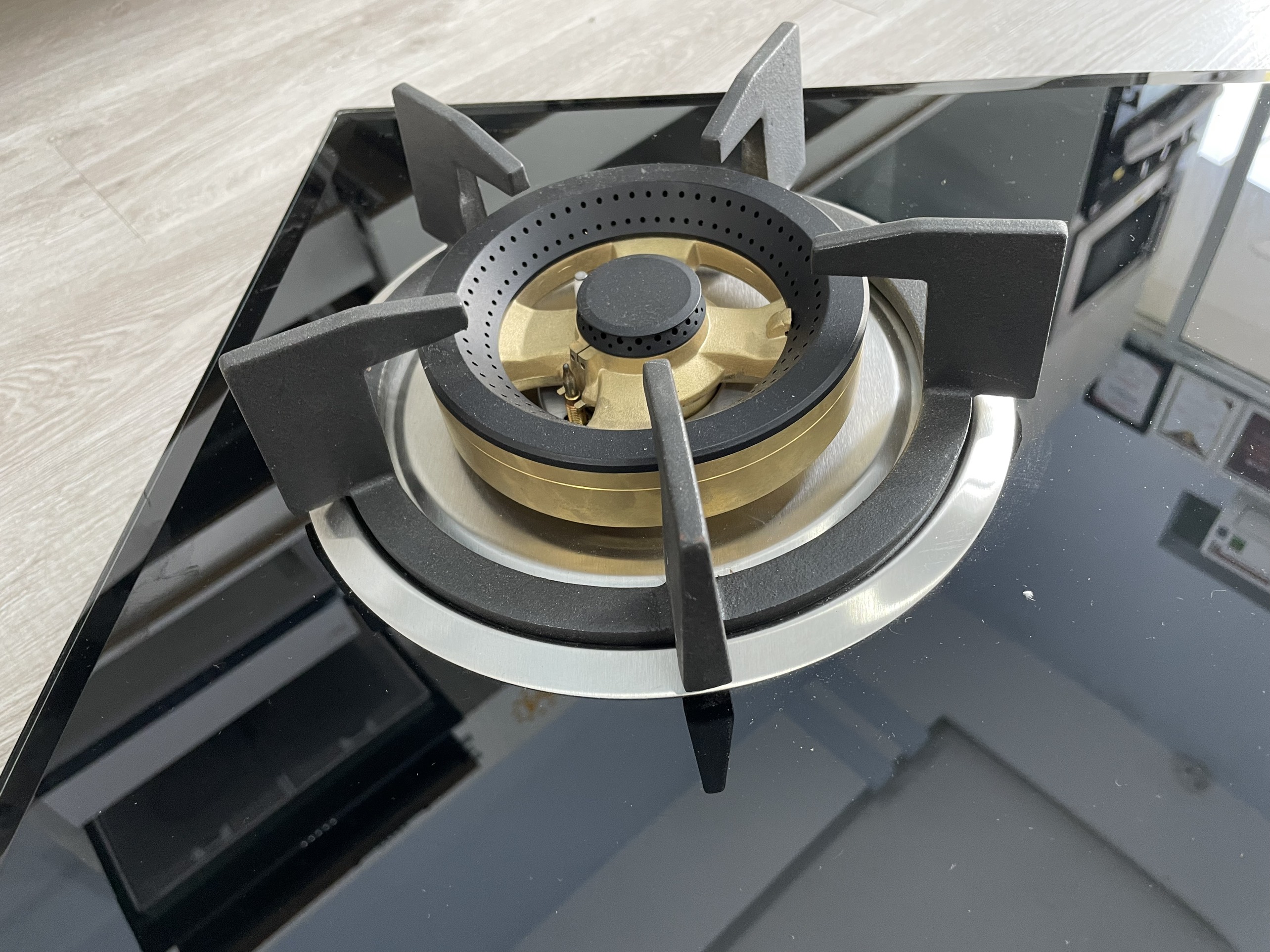 Bếp gas âm kính mang kiểu dáng sang trọng, mặt kính hoàn toàn đen bóng, kính chịu lực với chịu nhiệt tốt mà dễ dàng vệ sinh lau chùi còn tiết kiệm diện tích giúp