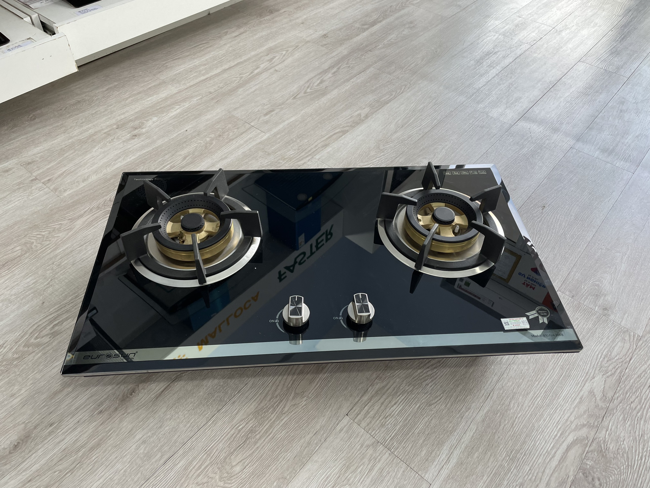 - Bếp ga âm Eurosun EU-GA205S thiết kế 2 lò nấu, được sản xuất trên dây chuyền hiện đại với các linh kiện cao cấp đồng bộ cấu thành sản phẩm.Bếp ga EUROSUN được trang bị mặt kính cường lực cỡ lớn với kích thước lên đến 760* 440mm dày 8mm đây là một trong những loại bếp ga được trang bị mặt kính lớn nhất hiện nay tạo thêm phần sang trọng cho không gian bếp.
