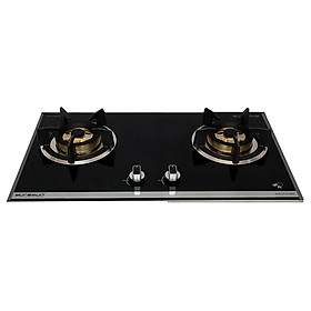 Bếp 02 lò: 01 lò to, 01 lò nhỏ Mâm chia lửa bằng đồng Hệ thống đánh lửa pin Pép hầm tiết kiệm gas Mặt kính cường lực, màu đen Kiềng gang đúc Lượng gas