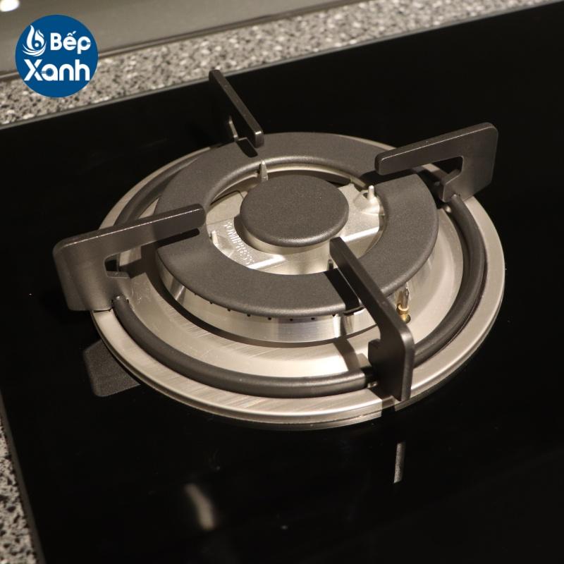 Không bị bào mòn, dùng bền bỉ. Các khe hở phân bố hợp lý giúp ngọn lửa cháy đều, xanh, ổn định. Công suất bếp 7.8 kW/h/2 lò, tiết kiệm gas.