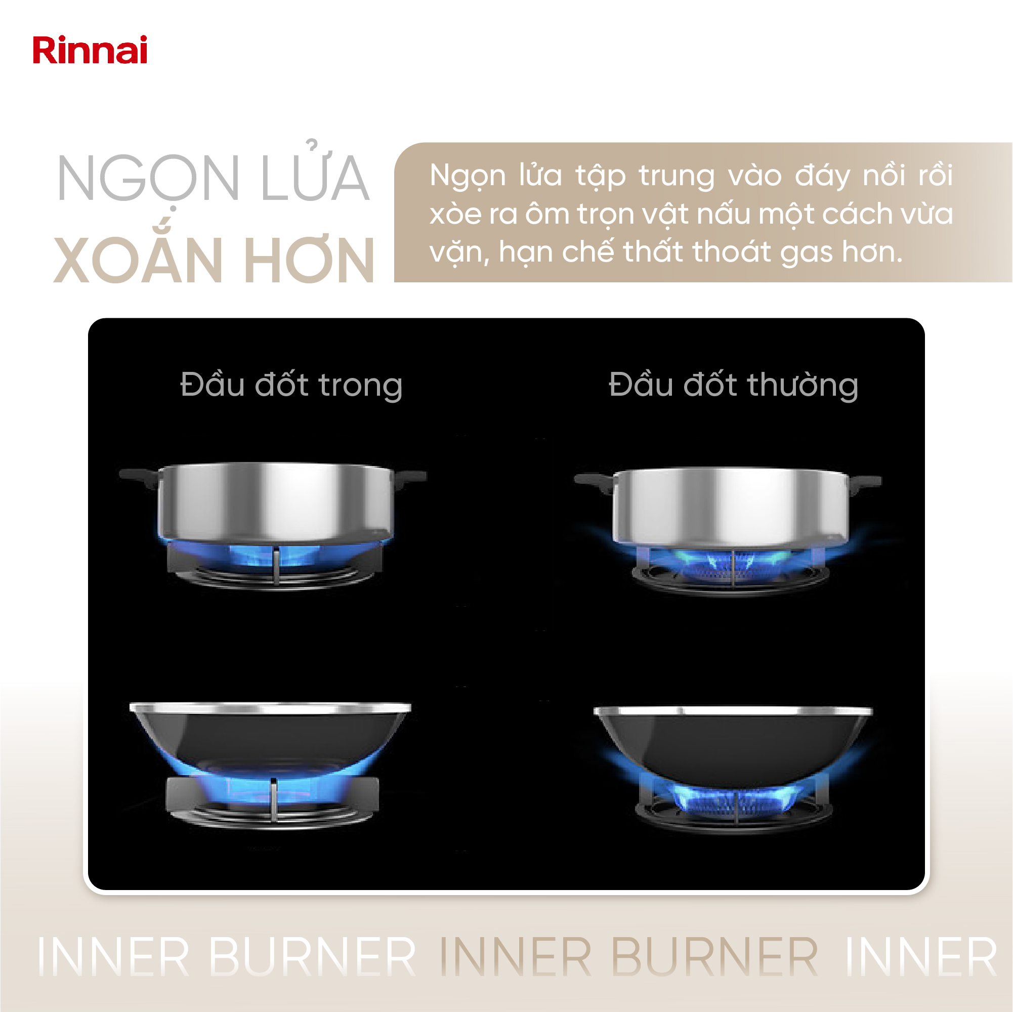 RINNAI chân thành cảm ơn bạn đã quan tâm đến sản phẩm: Bếp gas âm đầu đốt trong Rinnai RVB-2i(AB) mặt bếp kính và kiềng bếp men - Hàng chính hãng.