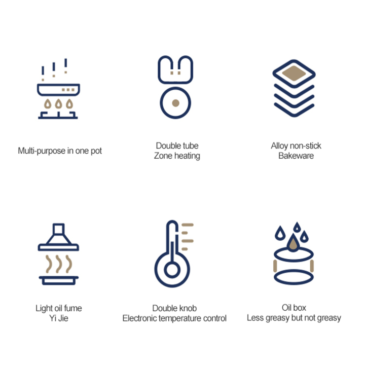 Đặc điểm nổi bật Bếp nướng không khói. Đại tiệc BBQ ngay tại nhà. Thiết kế khay nướng rộng, có rãnh, kiểu dáng đẹp mắt. Nhiều mức chỉnh nhiệt phù hợp cho từng món ăn. Nướng