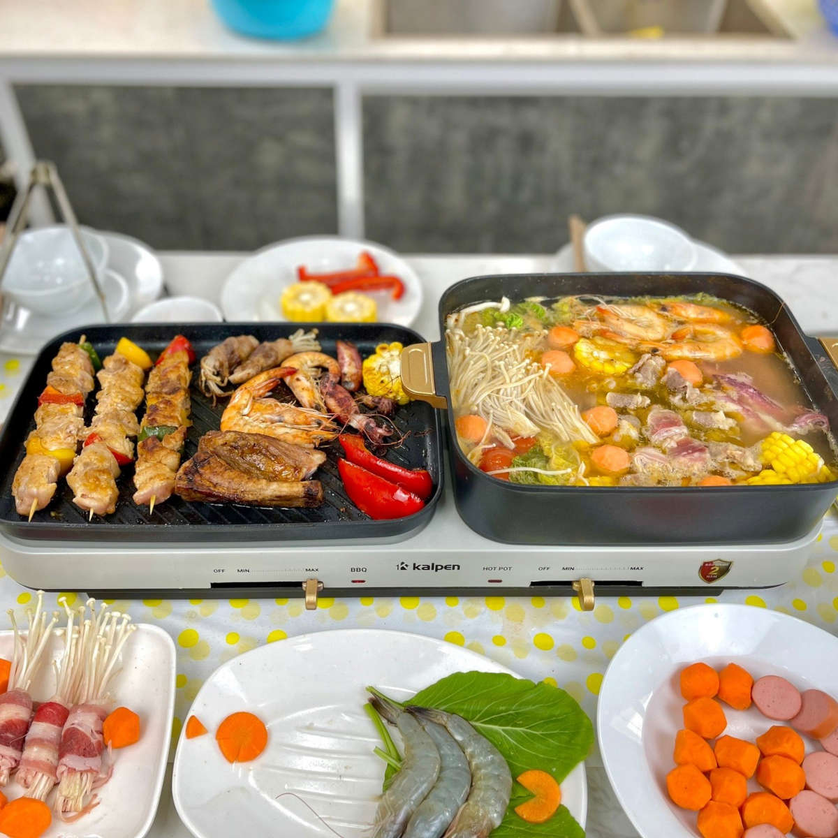 Bếp nướng lẩu 2 ngăn đa năng Kalpen 6.5L công suất 2200W chuẩn Đức tại #sanhangre Zalo 0816 505 655