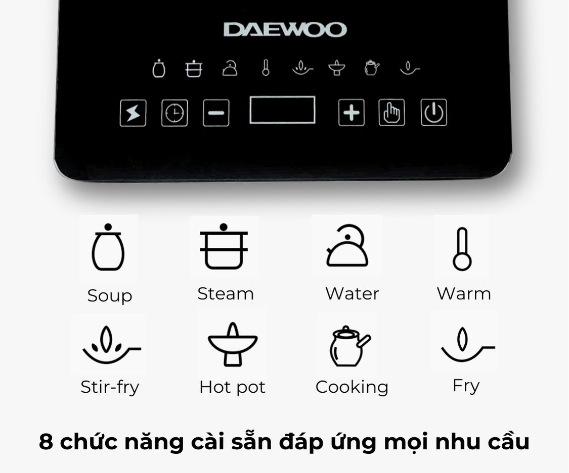 • Bếp từ chính hãng Daewoo: Đảm bảo chất lượng cao, bền bỉ, an toàn và hiệu suất ổn định.
