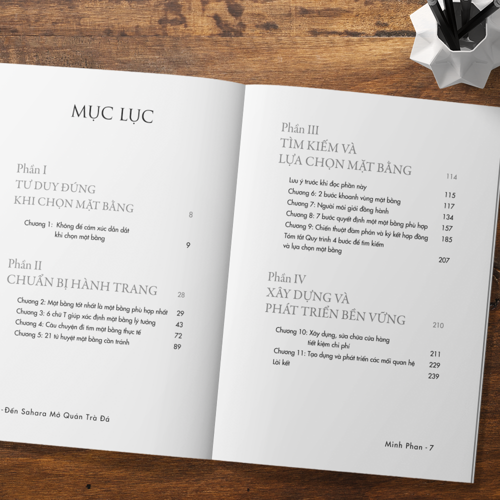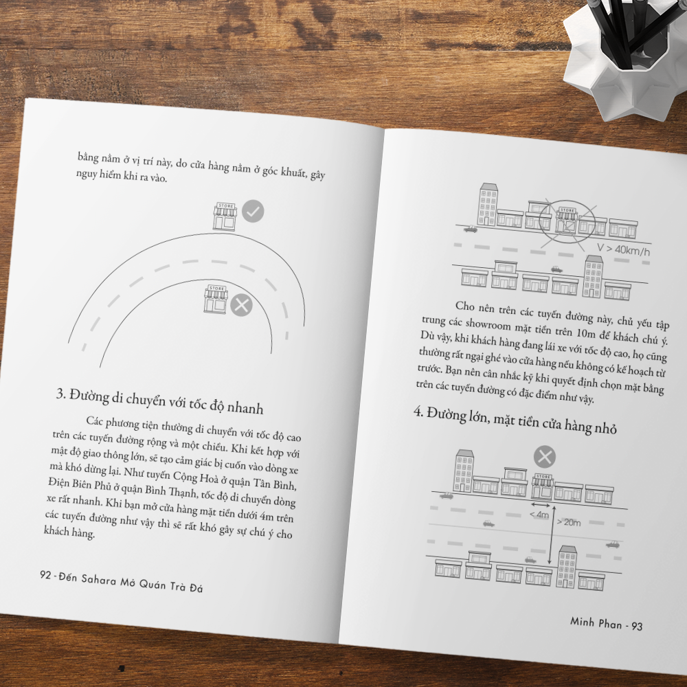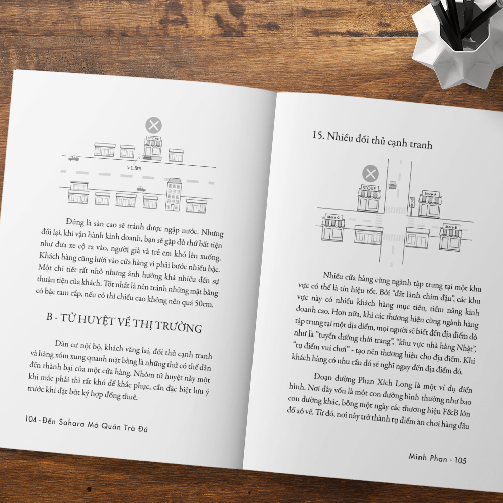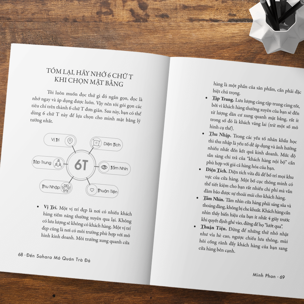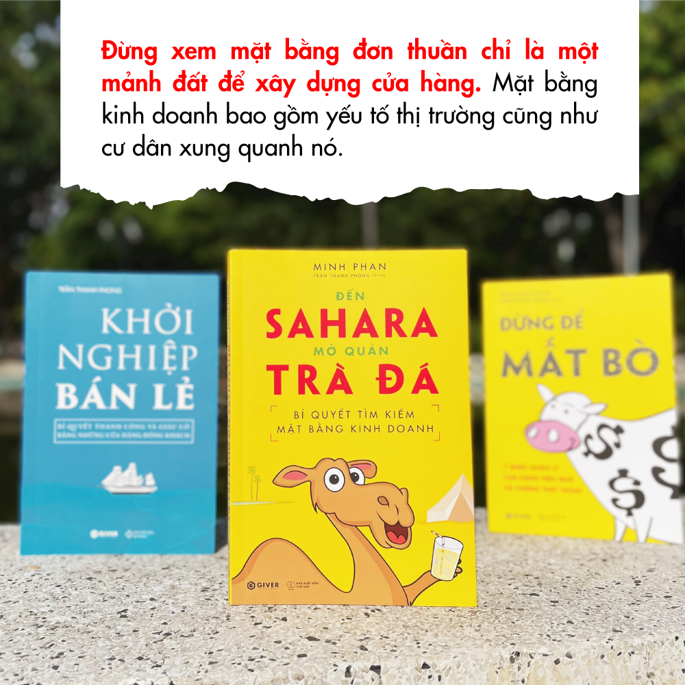 Cuốn sách “Đến Sahara mở quán trà đá - Bí quyết tìm kiếm mặt bằng kinh doanh” là quyển sách đầu tiên và duy nhất giúp giải quyết vấn đề này. Với hơn 10 năm hoạt động trong ngành mặt bằng, là người từng quyết định hàng trăm mặt bằng của 3 chuỗi cửa hàng tiện lợi lớn nhất Việt Nam, tác giả Minh Phan đã đúc kết lại tất cả kinh nghiệm xương máu của mình và gói gọn trong tập sách này.