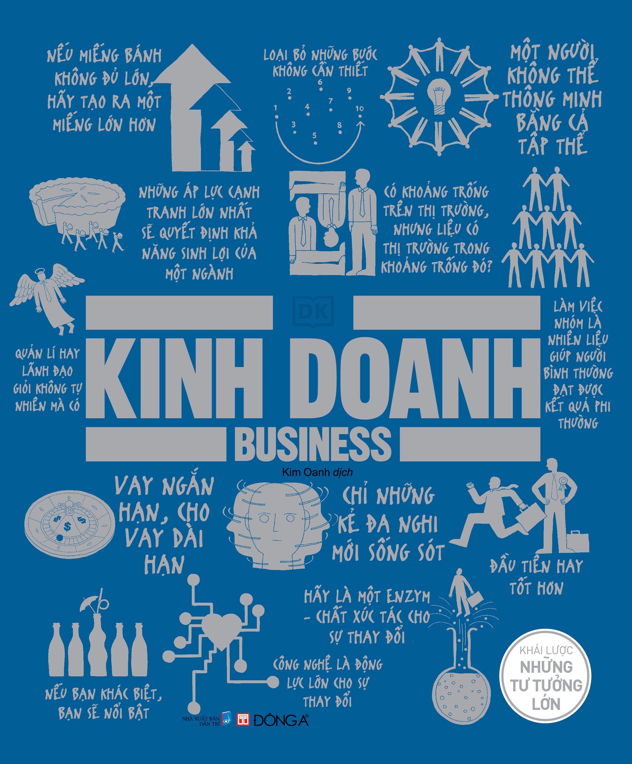 Làm thế nào để xây dựng thương hiệu thành công? Điều gì tạo nên một nhà lãnh đạo giỏi? Vì sao một số doanh nghiệp gặp thất bại trong khi số khác lại phát triển vượt bậc? Trong suốt chiều dài lịch sử, các chuyên gia về kinh doanh đã đúc kết những ý tưởng và giải pháp góp phần định hình thế giới kinh doanh và thương mại như ngày nay. Được viết bằng văn phong đơn giản, Kinh doanh – Khái lược những tư tưởng lớn mở ra những ý tưởng độc đáo, với cách giải thích ngắn gọn, súc tích kèm theo các biểu đồ dễ hiểu và hình minh họa dí dỏm, giúp bạn tiếp cận những kiến thức cốt lõi về kinh doanh và thị trường thế giới.