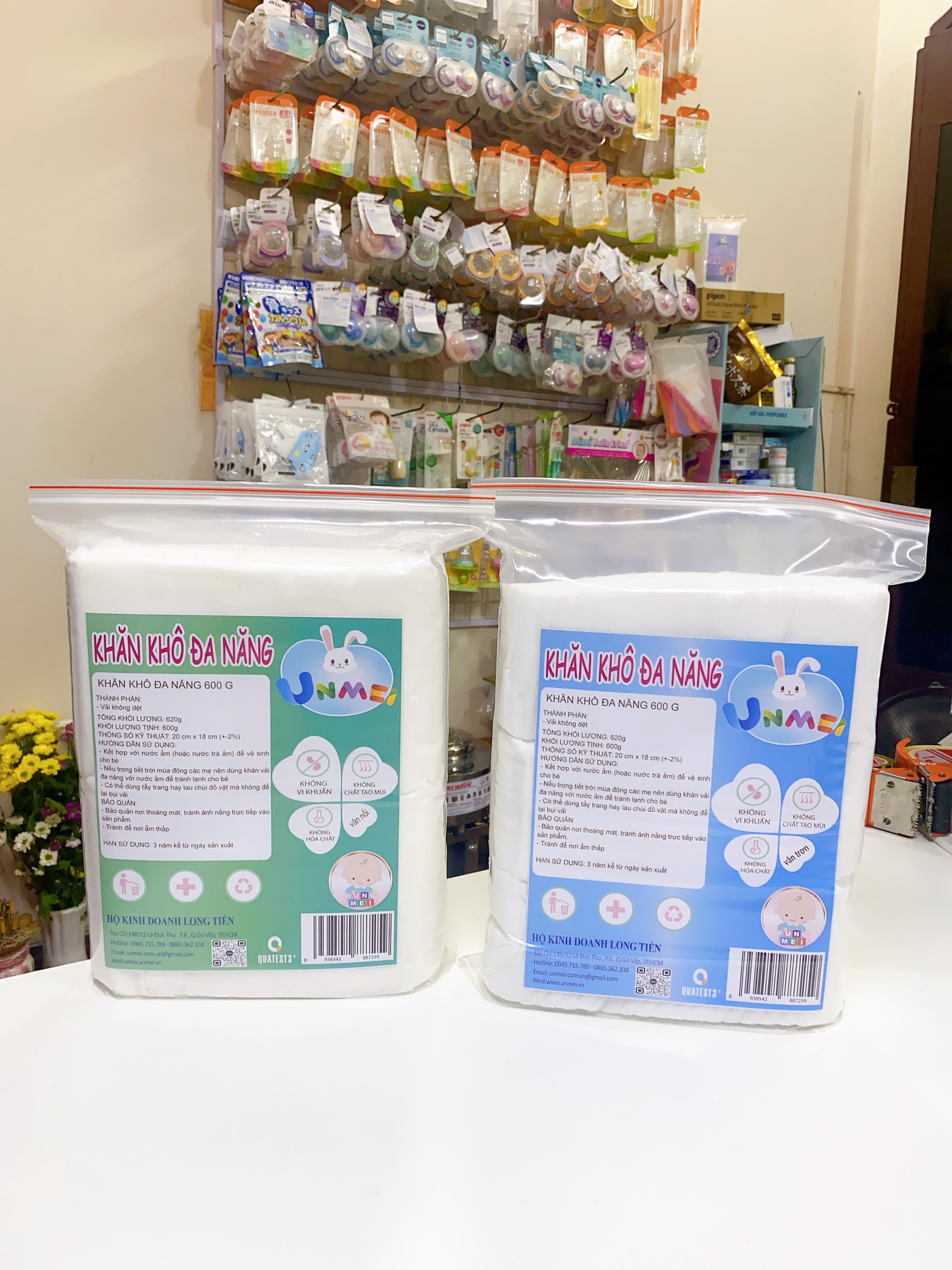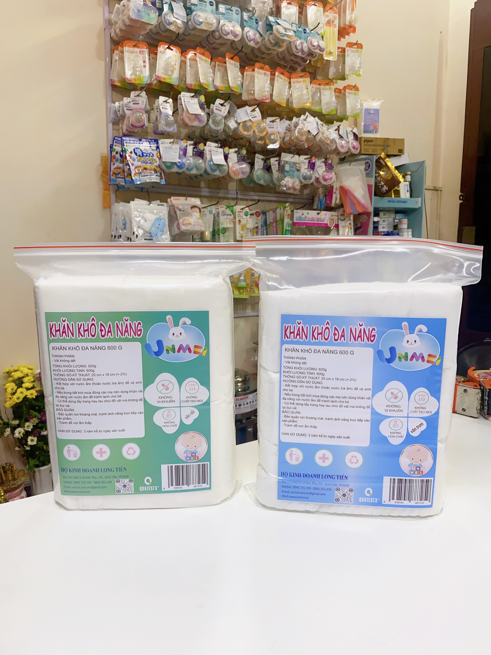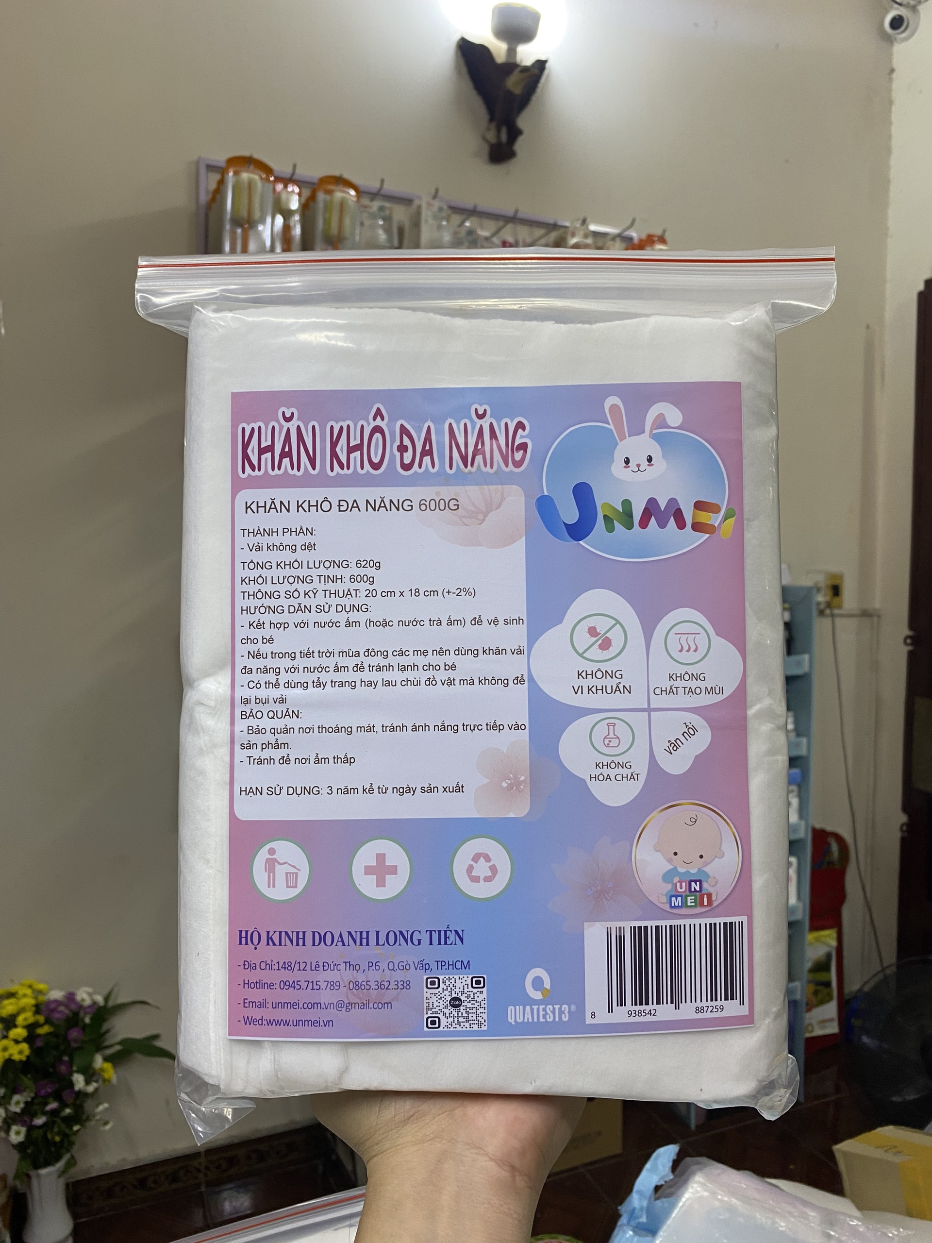 ✨(Bịch Tiết Kiệm) Khăn Khô, Khăn Vải Khô Đa Năng UNMEI Vân Trơn/Vân Nổi 600g An Toàn Cho Da Em Bé