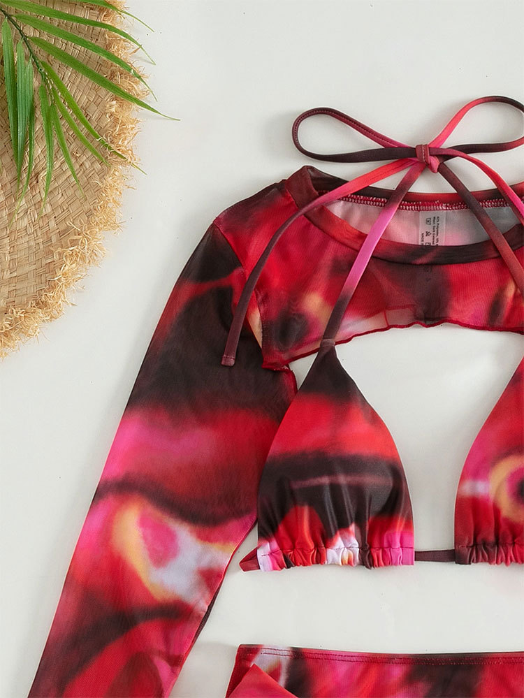 Set Đồ Bơi Nữ Rời Đùi Dài Tay Đi Biển Đi Bơi Chất liệu Polyester 95%, mật độ dệt vừa Áo có sẵn lớp đệm, hông áo có thể rút lên làm croptop cá tính