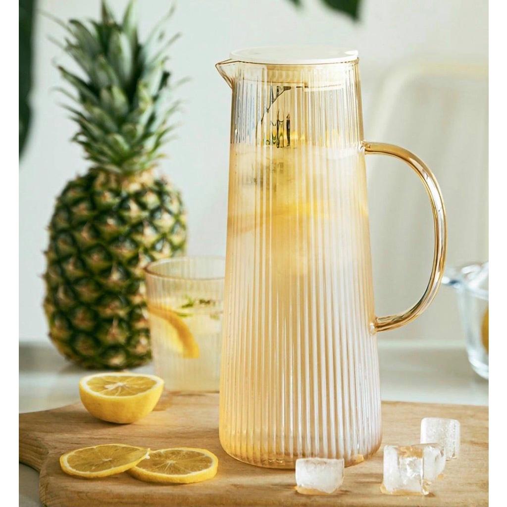 ✨Bình đụng nước uống thủy tinh cao cấp vân tăm 1270ml mạ vàng