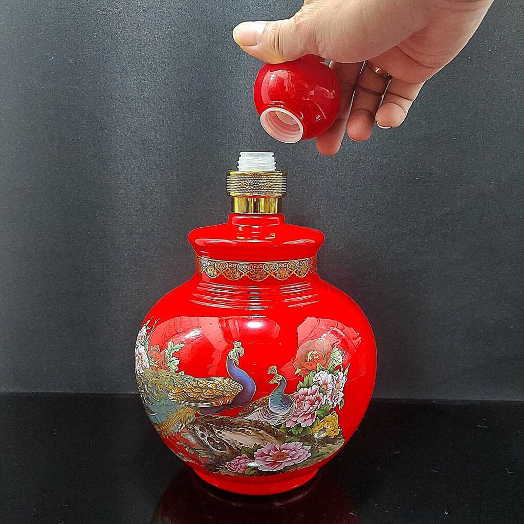 Glass bottle 1500ML – Ground shape – Lucky Red color - Peafowl pattern (H1)