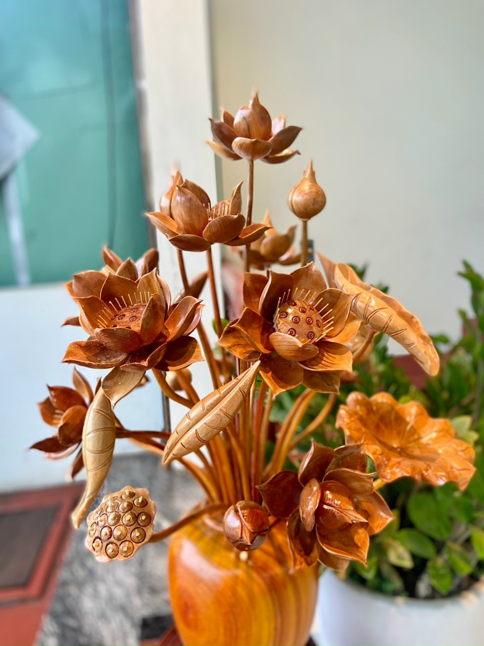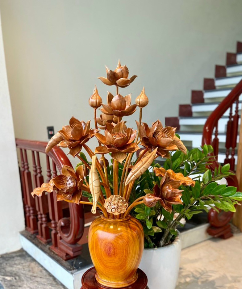 Bình Hoa Sen 21 Cành Gỗ Ngọc Am Thơm Nức Đẹp Giá Xưởng| Xưởng Tượng Gỗ Độc Đáo - 0938410333