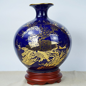 Bình hút tài lộc phong thủy vẽ vàng 24k, gốm sứ Bát Tràng cao cấp, trang trí phòng khách