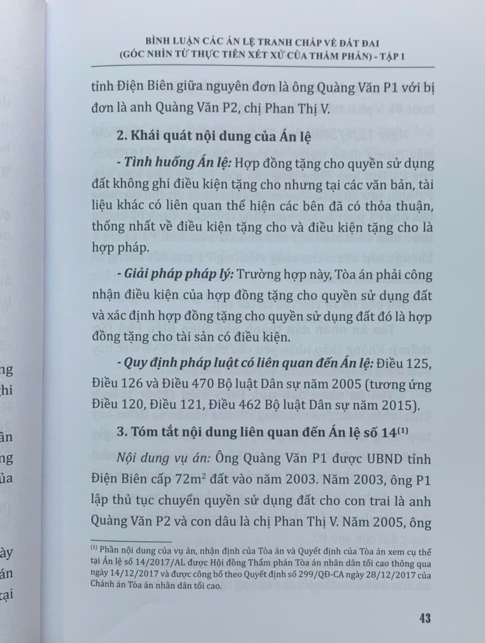 • Tập 1 tập trung vào các án lệ hợp đồng dân sự về đất đai (chuyển nhượng, tặng cho, trao đổi, đặt cọc).