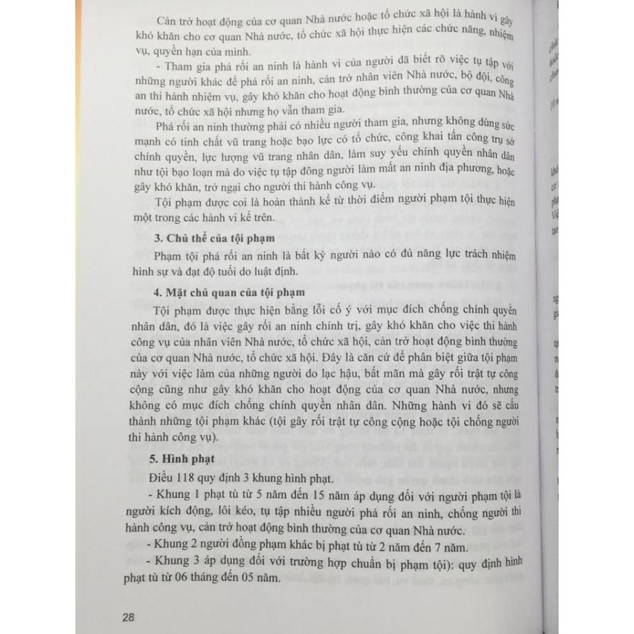 Nhà Xuất bản CAND đã kịp thời xuất bản cuốn “Bình luận khoa học Bộ luật Hình sự năm 2015 (sửa đổi, bổ sung năm 2017) – Phần các tội phạm” do nhóm tác giả gồm những nhà khoa học, cán bộ làm công tác thực tiễn, cán bộ tham gia Tổ biên tập xây dựng dự thảo các Bộ luật Hình sự năm 1985, năm 1999 và năm 2015 (sửa đổi, bổ sung năm 2017) có kinh nghiệm, trình độ trong các lĩnh vực nghiên cứu, giảng dạy, xây dựng, thi hành và áp dụng pháp luật về hình sự.