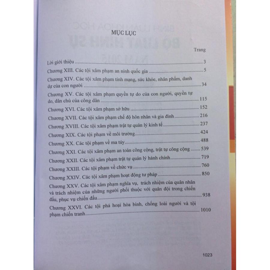BÌNH LUẬN KHOA HỌC BỘ LUẬT HÌNH SỰ NĂM 2015 (Sửa đổi Bổ sung 2017)PHẦN TỘI PHẠMNxb: Công An Nhân Dân.Phát hành: 01/2018Số trang: 1024trang