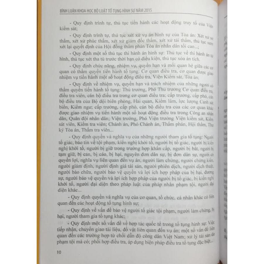 Bình Luận Khoa Học Bộ Luật Tố Tụng Hình Sự Năm 2015 (Tái Bản) Bộ luật tố tụng hình sự 2015 được Quốc hội thông qua ngày 27-11-2015, có hiệu lực từ ngày 1-1-2018. Việc