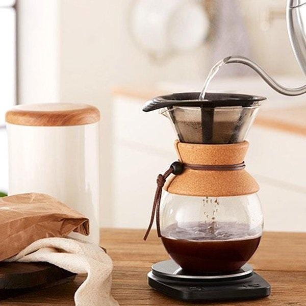 Bodum 11571-109 Pour Over Coffee Maker with Permanent Filter, Glass, 34 Ounce, 1 Liter, Cork Band