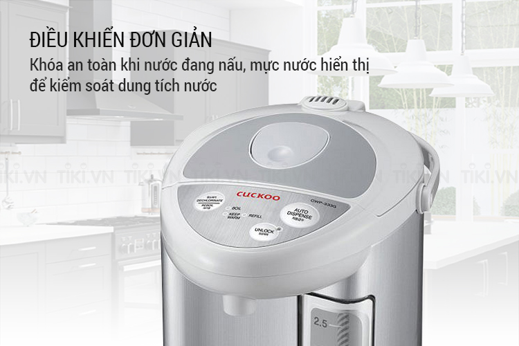 Hệ thống điều khiển bằng phím bấm điện tử, giúp bạn dễ dàng sử dụng ngay cả khi lần đầu tiếp xúc. Ngoài ra, bạn có thể dễ dàng rót nước bằng nút bơm điện tử, khóa an toàn khi nước đang nấu, mực nước hiển thị để kiểm soát dung tích nước cần thiết.