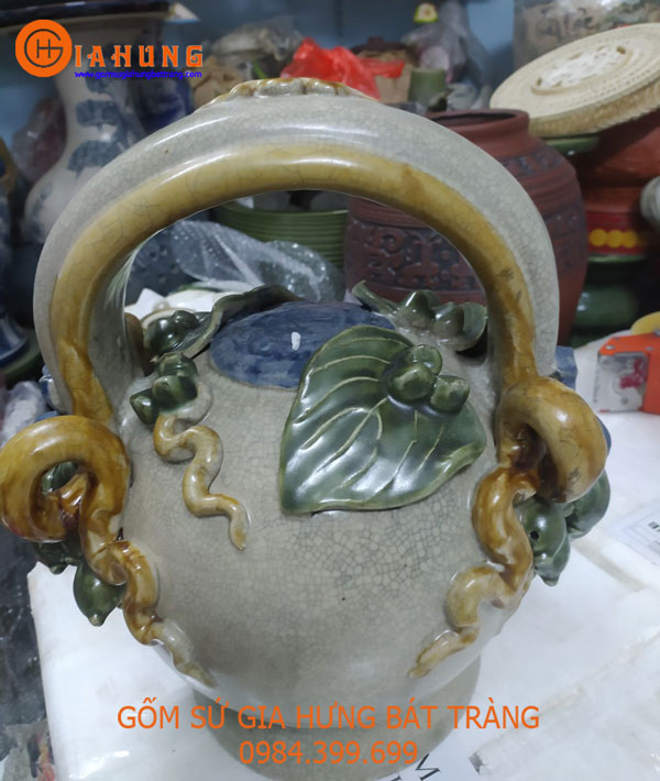 Bình vôi cỡ đại men rạn và men xanh ngọc , gốm sứ cao cấp bát tràng .